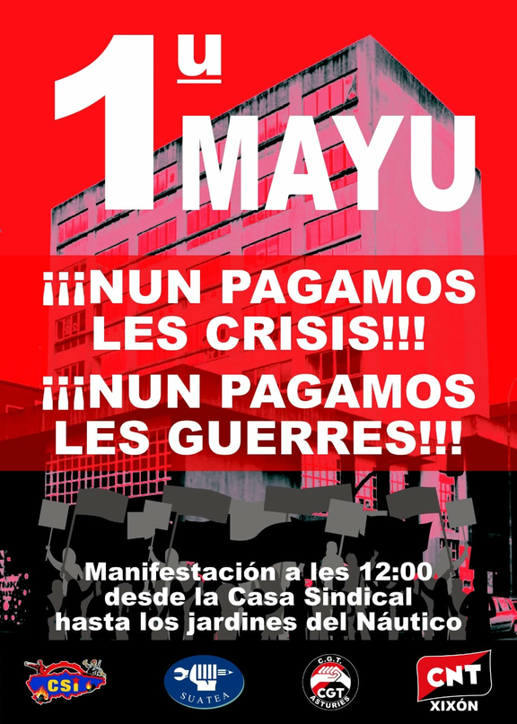 Manifestación Primero de Mayo en Xixón.CNT-CGT-CSI-SUATEA