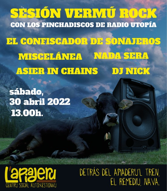 Esti sábadu 30 d'abril, tenemos la visita de los compañeros de Radio Utopía, que vienen a animanos la cadarma con una bona pinchada de rock and roll de tolos xéneros. Va gustavos enforma!!