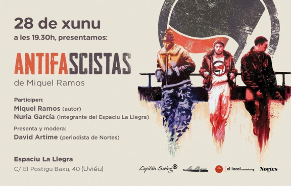 El martes, 28 de xunu, dende les 19:30h vamos tener con nosotres a Miquel Ramos y David Artime, redactor de @Nortes, pa presentar "Antifascistas", recientemente espublizáu pol primeru cola editorial @Capitán Swing.