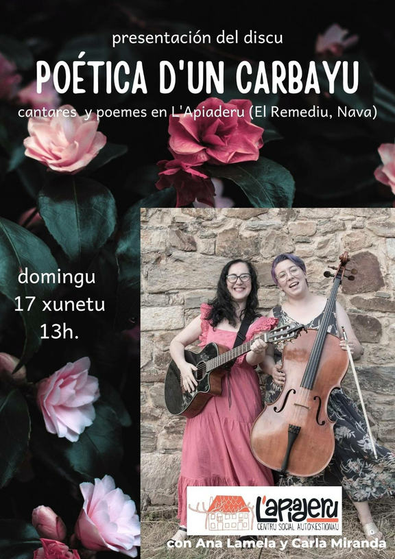El domingu poesía y musiquina con AAna LamelaLamela y Carla Miranda PPoética d'Un CarbayudPoética d'Un CarbayuCarbayu ![]()